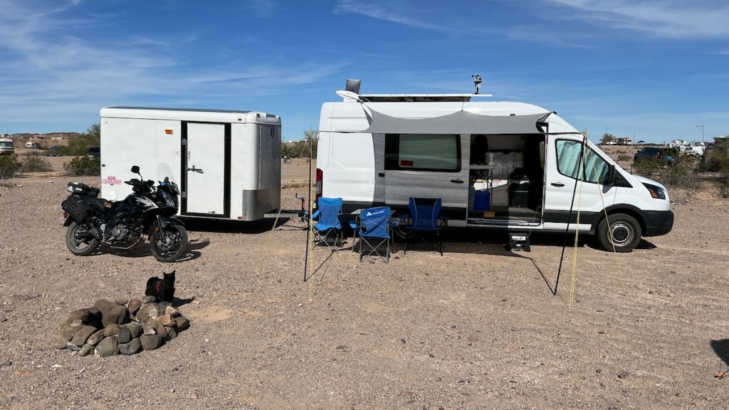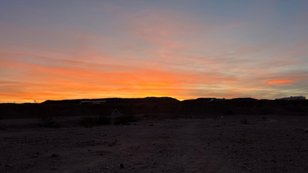After one more day in Quartzsite (it was worth staying an extra day to see Kendrick and meet Veronica), I packed up and headed back to Imperial Dam. To my surprise, Melissa, a fairly new arrival at our Quartzsite camp, decided to come with me. She was feeling the same way about the crowds, and she had a few days left on her two-week LTVA pass before resuming her journey back east. Since it’s also valid at Imperial Dam, she decided to escape the Quartzsite crowds and see someplace new before continuing her travels, and I don’t mind being her tour guide in an area I know. Her Toyota 4Runner is a true tiny home compared to my setup. She’s an overlander, not a van lifer, and that’s perfectly okay.