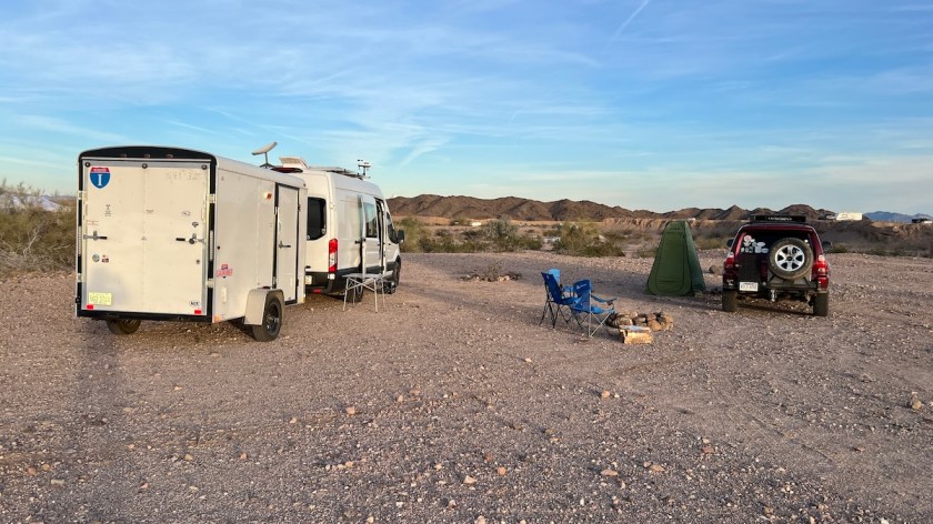 After one more day in Quartzsite (it was worth staying an extra day to see Kendrick and meet Veronica), I packed up and headed back to Imperial Dam. To my surprise, Melissa, a fairly new arrival at our Quartzsite camp, decided to come with me. She was feeling the same way about the crowds, and she had a few days left on her two-week LTVA pass before resuming her journey back east. Since it’s also valid at Imperial Dam, she decided to escape the Quartzsite crowds and see someplace new before continuing her travels, and I don’t mind being her tour guide in an area I know. Her Toyota 4Runner is a true tiny home compared to my setup. She’s an overlander, not a van lifer, and that’s perfectly okay.