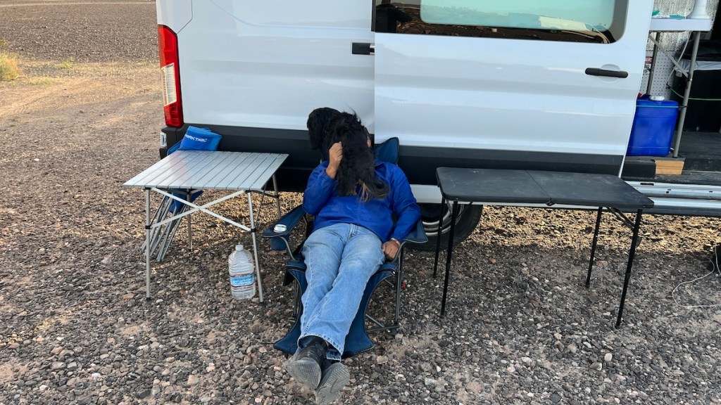 My master plan of buying building materials in civilization in Yuma, and then doing the build in Quartzsite near a hardware store worked well, especially when I suddenly found myself needing longer bolts than I had with me for building the headboard. It was also helpful to have multiple people to help remove my old bed from the van. I put it on the local buy/sell Facebook groups for free, and a biker woman took it away to install in her cargo trailer where she transports her Harley Heritage. That bed was built by a biker (my uncle), used by a biker (me), and remains with a biker, which is pretty cool. I’m also happy someone can put it to use, and that I didn’t have to toss it in the dumpster on my way out of town.