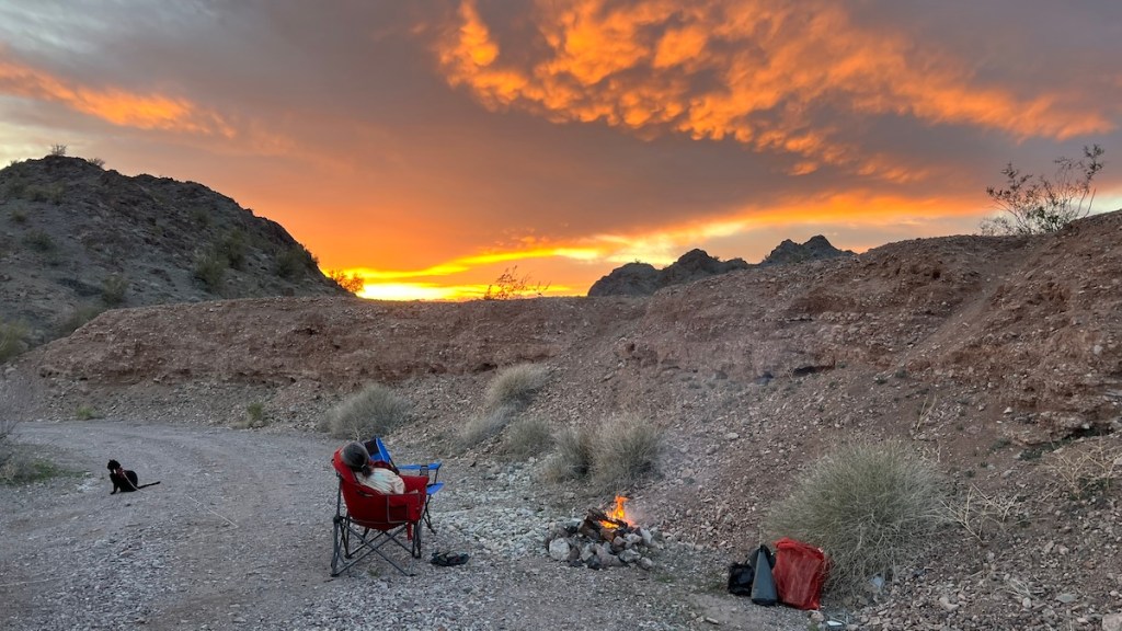 While not the least expensive place I’ve ever been, it was worth it for the good food and the ambiance. After we were done, we sat back and enjoyed the band for a while. Eventually, we returned to camp, let Lister roam around and chase lizards, and had a campfire as we enjoyed one last Arizona sunset for the season.