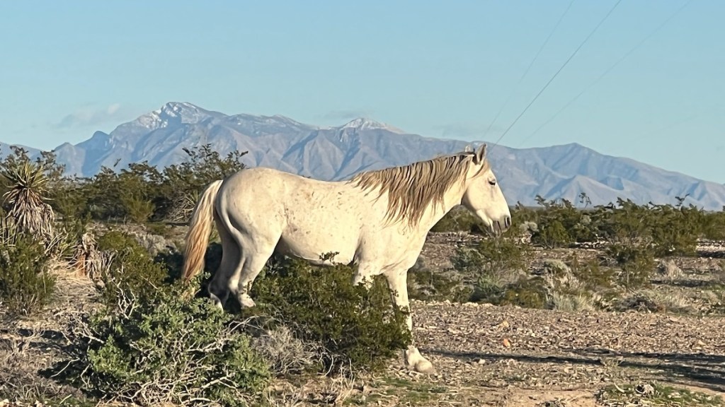 Later that evening, this wild horse walked by. He just came out of the desert and seemed to be on a mission, heading that-a-way pretty quick. I barely had time to get my phone out to take a quick picture and video before he was gone. I had no idea there were wild horses out here.