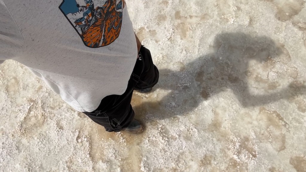 I walked about a quarter mile down the salt flats to get to the water. Everyone behind me is wading in the temporary lake. It’s quite a sight to see this in one of the driest places on earth.
