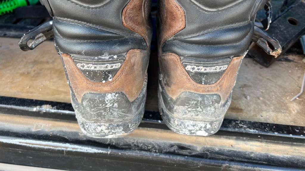 I enjoyed the rest of the ride back to Pahrump. When I took off my boots, I saw there was still salt on them, a sight I’m used to seeing on cars during many six-month-long New England winters. My bike came nowhere near the salt, though, so I don’t have to worry about it rusting out from under me the way every vehicle from New England does.
