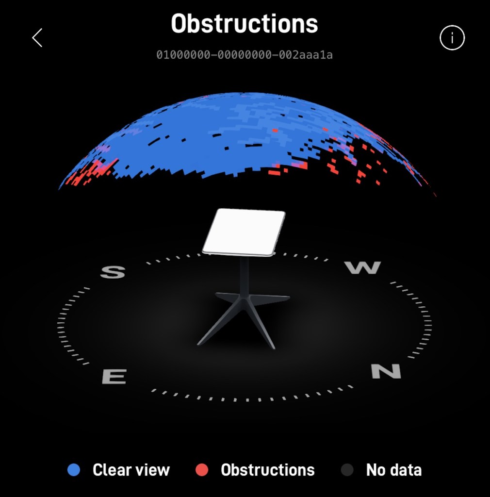 Starlink intends this feature to help you use it while in motion. A flat dish presents the smallest aerodynamic profile, which is just a fancy way of saying it’s less likely to blow off your roof while you drive. However, I have another use in mind. Both up on the hill and down here in the driveway, Starlink has been aiming itself directly at tall trees instead of toward a clear sky. It knows its location thanks to GPS, and it knows where the satellites are, but it has no way to detect the surrounding terrain or obstructions until it starts having connection problems.