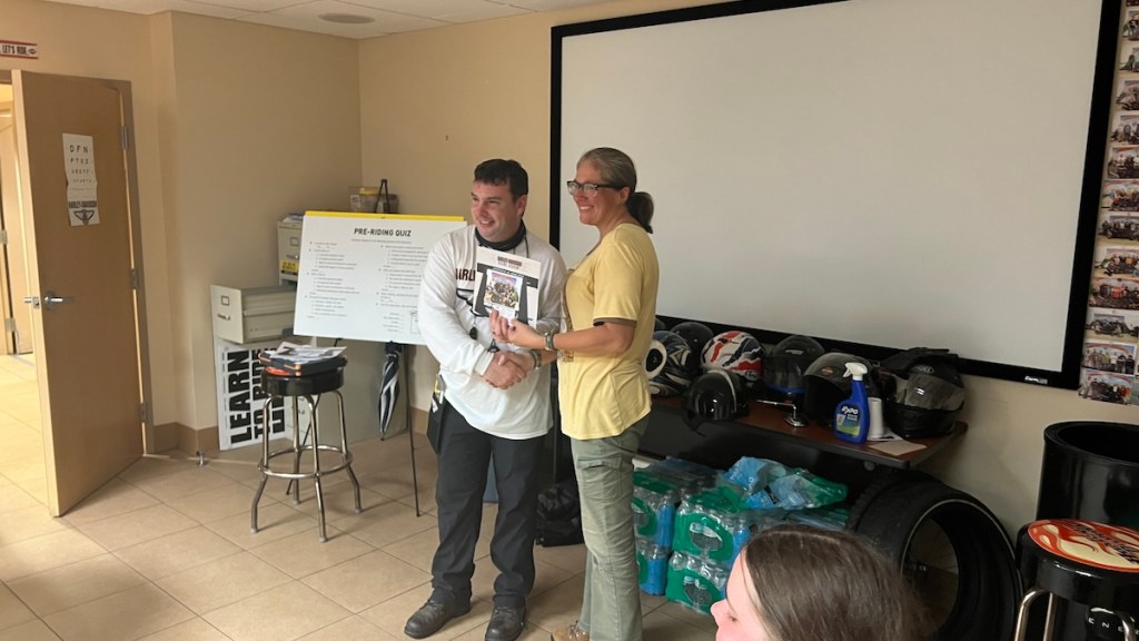 I won’t go into a lot of detail about the class itself. For one thing, this is a van life website. For another, I will be going into a lot of detail about the class in an article for ADVRider, which I’ll try to remember to link here once it’s written and published. What I will say is that it was two intense days of learning, mostly on the bikes. I’d intended to mostly keep to myself during the class to not be disruptive, but the instructors invited me to hang out, and Melissa liked having me there, so I ended up spending most of my time watching and taking pictures and videos. (I’m going to put together a 1980s action hero training montage sequence of Melissa becoming a badass biker chick.)