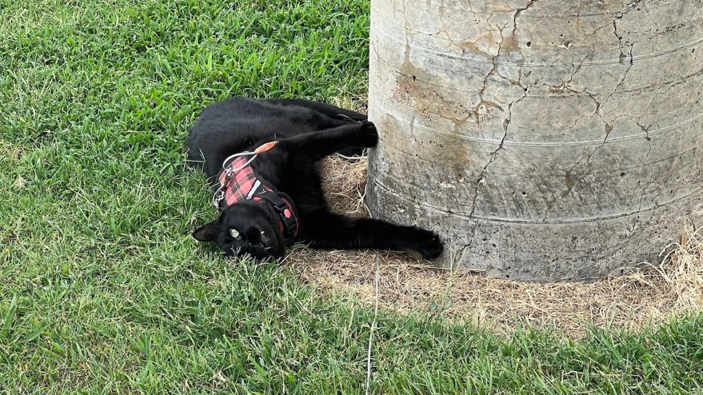 Around lunchtime, I picked up a few groceries, including sandwich makings for myself over the weekend. Melissa’s lunch on Saturday was included with the class, but I needed to feed myself. Then, I hung out at another park for the afternoon. Lister seemed to enjoy the change of scenery and new grass to chew on.