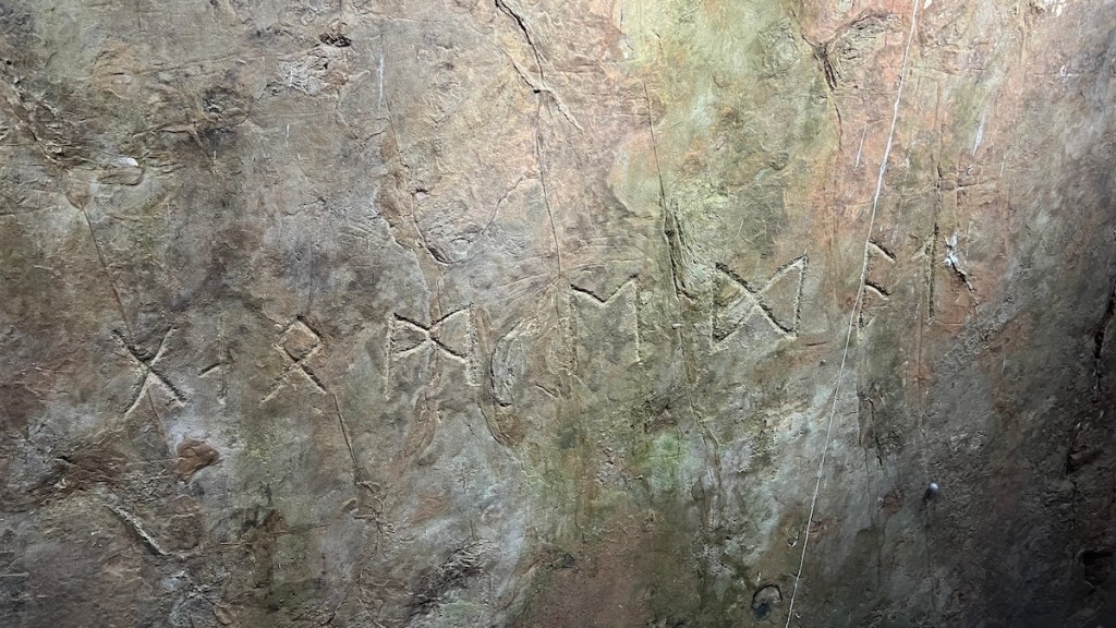There have been numerous theories as to their origin over the years, but many historians now agree that they are Viking in origin, Elder Futhark that roughly translates to “Valley owned by Glome.” In other words, this is a land claim by a Viking named Glome.