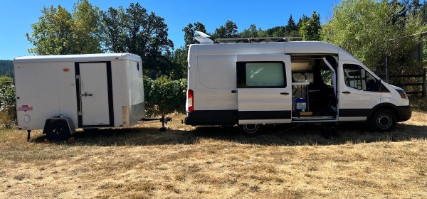 While I was waiting out the fly bomb inside my van the other day, I set up a small office inside my trailer so I