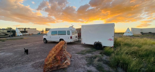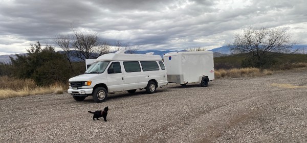 Our story begins at an abandoned restaurant just outside Tucson, where we spent the night. Normally I wouldn’t park at a place like this, but