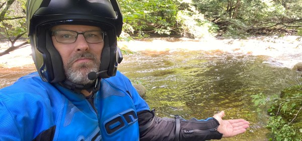 After coffee and a work meeting, I hopped on the bike to scout a bit farther down the road, looking for any better available campsites